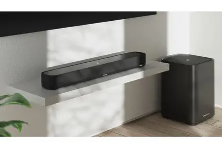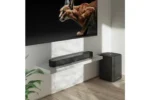 Barre de son extrêmement compacte et élégante qui s’insère dans les supports de télévision et s’intègre dans tout environnement. Une qualité de fabrication remarquable et un design minimaliste et discret, mais très séduisant.