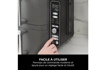 Sa puissance de 2470W assure une montée en chauffe très rapide. Grâce à ses 2 tiroirs de cuisson indépendants, vous pourrez choisir des modes, des durées et des températures de cuisson différents dans les deux tiroirs.