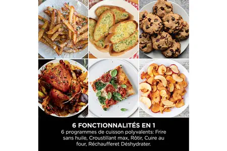 Les 6 modes de cuisson personnalisables permettent de frire sans huile, rôtir, cuire au four, réchauffer et déshydrater.