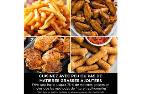 – Frire sans huile (Air Fry) : préparez vos fritures préférées en utilisant jusqu’à 75 % de matières grasses en moins et dégustez-les sans culpabiliser.