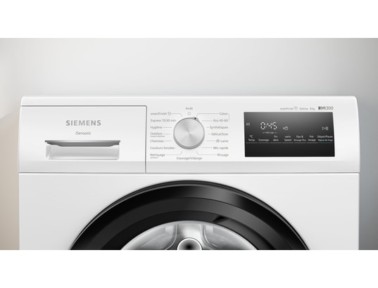 Le lave-linge WM14N248FR, de Siemens, dispose d’un volume de 65 litres, qui offre une capacité de lavage de 8 kilos.